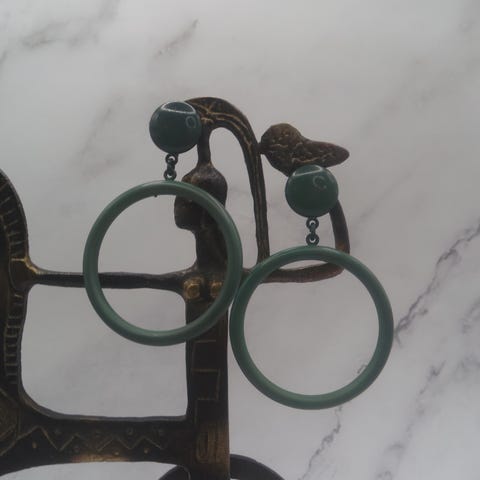 Dekorative vintage klipsøredobber med grønn stein og fine filigrandetaljer. Flott retroinspirert uttrykk som passer både til hverdags og til litt penere bruk.