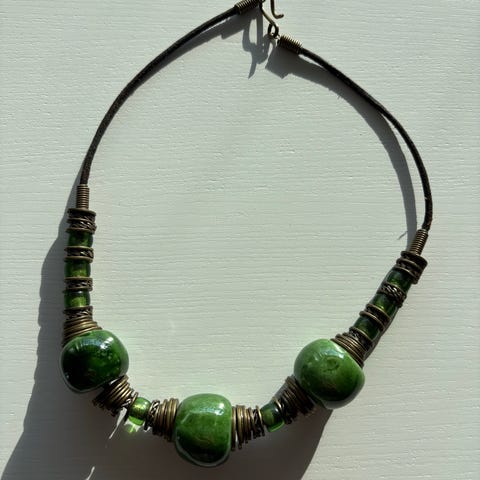 • Grønn stein/cabochon-look.