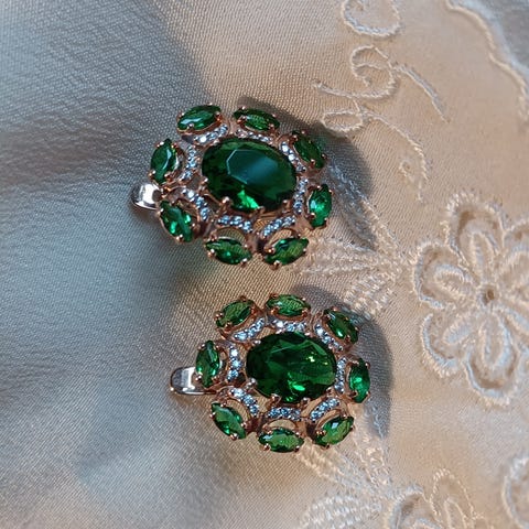 Vintage klipsøredobber med grønn stein og filigrandetaljer