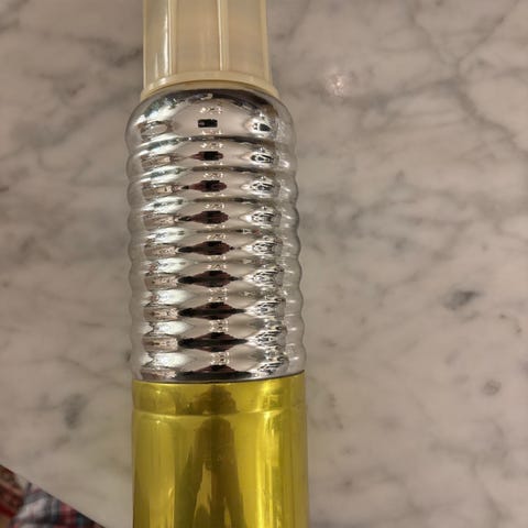Thermos Model 18Q termosflaske i metall med rutete mønster i brune og oransje toner. Termosen har avtagbart hvitt plastkopp-lokk med hank og skrukork. Innsiden har isolert beholder i metall. Modellen er merket «Model 18Q» og «Refill 14F» på utsiden, og bunnen er merket «Thermos Ltd Made in England». Egnet til oppbevaring og transport av varme eller kalde drikker.