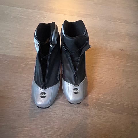 Alpina langrennsstøvler i størrelse 46. Modellen har overdel i blått og sølv med glidelåslukking foran som dekker lissesystemet. Sålen er tilpasset moderne langrennsbindinger (se bilder for detaljert såletype). Støvlene har ankelstøtte og forsterket hælparti for bedre stabilitet ved klassisk langrenn. Egnet til bruk på preparerte skiløyper.