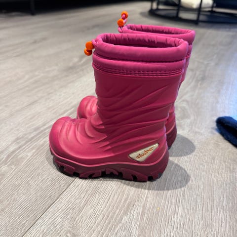 Slusher vinterstøvler for jente i størrelse 37. Støvlene er rosa og går opp mot leggen for ekstra beskyttelse. De har grov såle for godt grep og snøring øverst for å holde snø og fukt ute. Innsiden er fôret for varme og komfort i kaldt vær. Egner seg til bruk i snø og vått vinterføre.