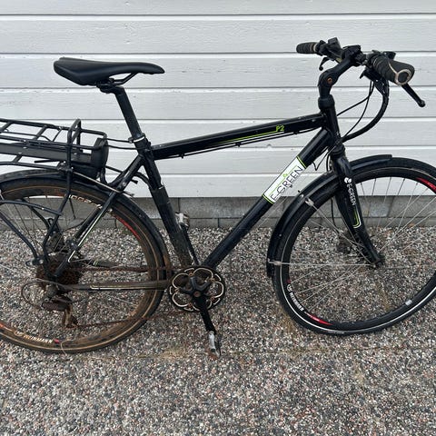 Kan ingenting om sykkelen men begge dekkene er uten luft. Vet ikke om de er punktert. Skade i setet og litt rust.