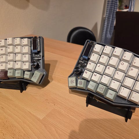 Tastaturet er selv bygd kbd fans case med hatten yellow switches den er hotswappable makropad er også hotswap men merk at du må ha magnetiske seitches fra wooting eller lignende