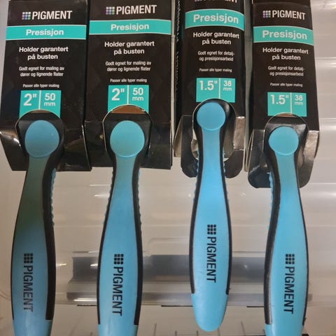 Pigment ProBust malekoster sett i flere størrelser. Settet inneholder flate pensler med syntetisk bust og håndtak i turkis plast. Busten er konstruert for å ikke miste hår under bruk. Penslene er merket med bredder som blant annet 1,5" (38 mm), 2,5" (62 mm) og 3" (75 mm), egnet til både presisjonsarbeid, detaljarbeid og maling av større flater. Malekostene kan brukes til ulike typer maling og overflater innendørs og utendørs