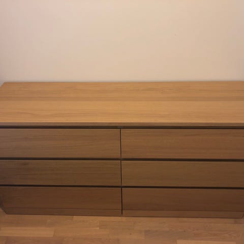 Pent brukt kommode i eikefiner, gyllen farge som ikke lenger er i salg.
