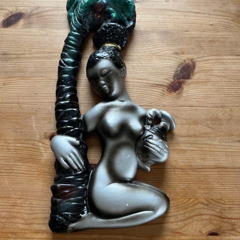 Keramikkfigur som forestiller Madonna i bønn. Figuren har blå kappe og hvit kjole, med lyse hudtoner og nedslått blikk. Egnet som dekorasjonsgjenstand i hjemmet, for eksempel på hylle, skjenk eller nattbord. Kan også brukes som religiøs symbolfigur i stille rom eller bønnerom.