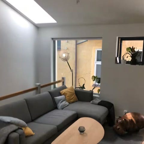 Sofaen har følgende mål slik den står i dag (uten sjeselong, bilde 1): 240cm x 308cm. (Sjeselong er ikke brukt siste året.)