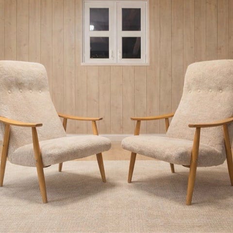 Selger to godt brukte siestastoler. Begge er slitt i skinnet og armlenet er løst på den ene, men skruen bak står i så godt mulig den kan festes😊 trenger litt TLC, men understellet er fint så stolene blir bra med nye puter. Selges som par.