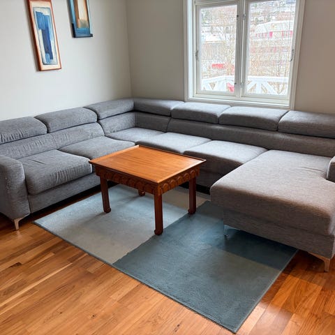 Selger en komplett stueløsning til en svært lav pris! Her får du en stor hjørnesofa, en god lenestol og et salongbord samlet. Møblene må hentes raskt på grunn av flytting.