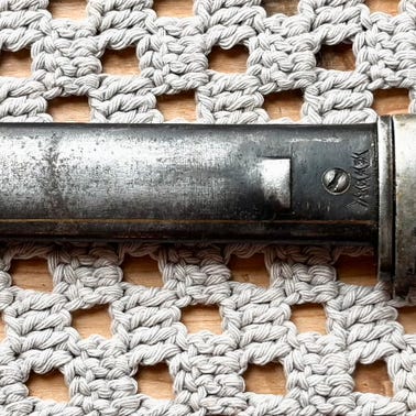 Bajonetten fremstår som et autentisk historisk våpen med naturlig slitasje etter alder og bruk, uten skader som påvirker helheten. Passer godt for samlere av militæreffekter, dekorasjon eller som et unikt historisk objekt.
