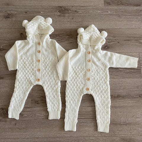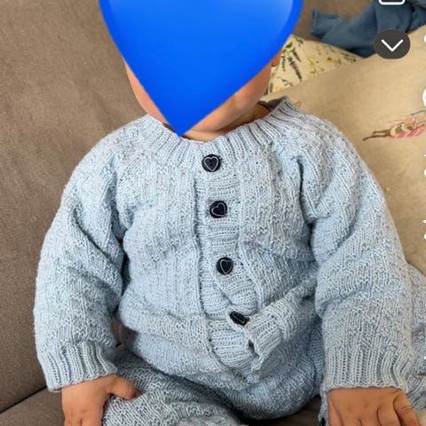 Ubrukt fabrikkstrikket heldress med helfor. Str 74. Dressen har hette og 2 lommer. Passer til både gutt og jente. Selges kr 250.-