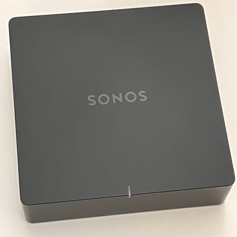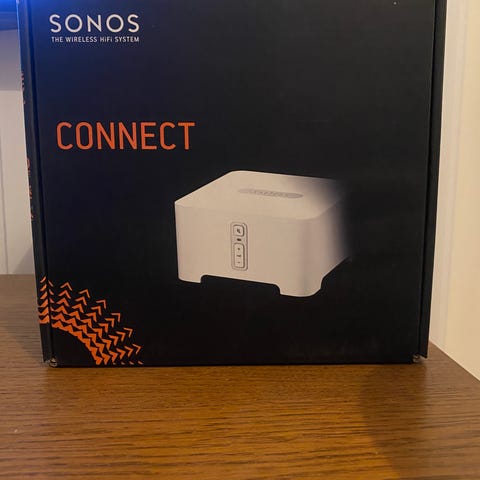 Sonos Connect Amp forsterker i hvit utførelse. Modellen er en nettverksforsterker som kan brukes til å drive passive høyttalere og integreres i Sonos sitt multiromssystem. Enheten kobles til hjemmenettverket og gir mulighet for strømming av lyd fra ulike kilder via Sonos-plattformen. Passer for bruk i hjemmet der man ønsker å koble tradisjonelle høyttalere til et trådløst lydsystem.
