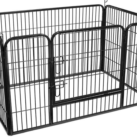 Metall grindpanel til hundegård i grå farge. Består av 8 paneler med dørseksjon med enkel låsemekanisme.