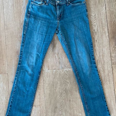 Valient bootcut jeans for jente i blå denim. Buksen har størrelse EU 34 med livvidde W25 og benlengde L32. Klassisk femlommersmodell med knapp- og glidelåslukking. Kule lommer på baksiden med knapper. Laget i denimstoff med lett vasket uttrykk. Passer som hverdagsbukse eller til mer pyntede antrekk avhengig av styling. Kan hentes på Etterstad eller sendes med helt hjem.