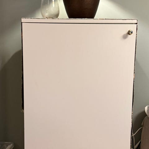 Underskapet er 102 cm høyt med ben, overslaget er 90 cm høyt