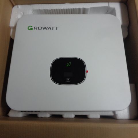 Growatt MID 12KTL3-X PV-vekselretter for solcelleanlegg. Enheten er beregnet for trefase tilkobling og har nominell effekt på 12 kW. På typeskiltet fremgår blant annet inngangsdata for DC (PV-spenning og strøm), utgangsdata for AC, frekvens og virkningsgrad. Vekselretteren har flere DC-innganger, AC-tilkobling og kommunikasjonsporter plassert i underkant av enheten. Egner seg for tilkobling av solcellepaneler i bolig- eller næringsinstallasjoner der det er behov for en trefase PV-vekselretter i denne effektklassen.