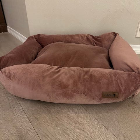Dyreseng til hund eller katt i deilig myk teddy. Str 75x60x20. Den er såvidt brukt så er så godt som som ny.
