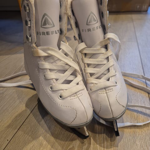 Bortimot ubrukte skøyter / danseskøyter til barn i størrelse 29 (står 175 på dem, antar at det er mondopoint størrelse).
