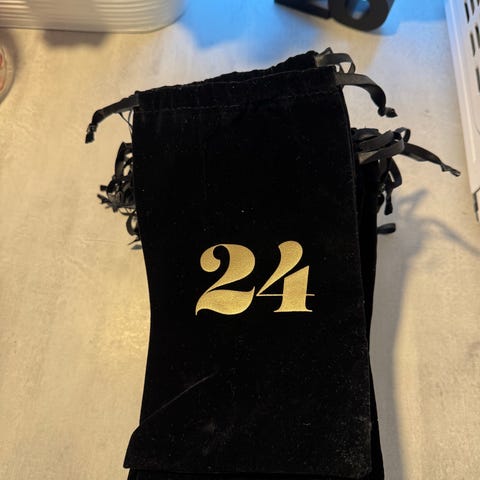 Rosa fløyel med gull tekst - 24 stk i samme størrelse