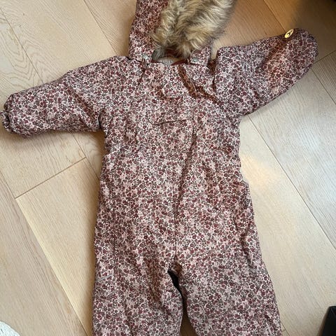 Wheat parkdress med litt vattert fôring for barn i størrelse 80. Dressen er rosa . Modellen har hette, lange ermer og lange ben med strikk nederst. Egnet for jente og til bruk som yttertøy i hverdagen.