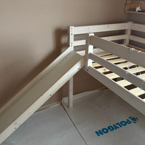 Selger barneseng, babynest, 2 madrasser (1 babydan og en standard fra IKEA) og aerosleep madrass for baby slik at de kan sove på magen.