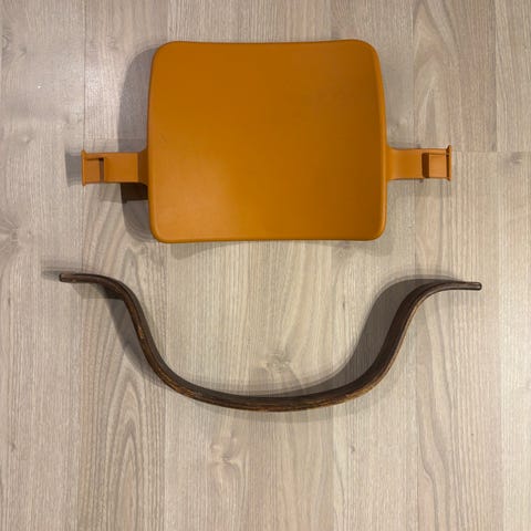 Selger bøyle m/skinstroppe til den eldre Stokke stolen der plast tilbehøret ikke kan brukes på. Selges ikke lenger i butikk. Stroppen er noe mer brukt, men fullt funksjonell