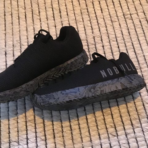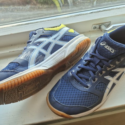 Okaki joggesko i størrelse 42. Skoene har blå overdel i pustende tekstil med snøring og polstret hælkappe. Sålen er hvit med strukturert demping som gir komfort ved gange og løping. Passer som fritids- eller treningssko.