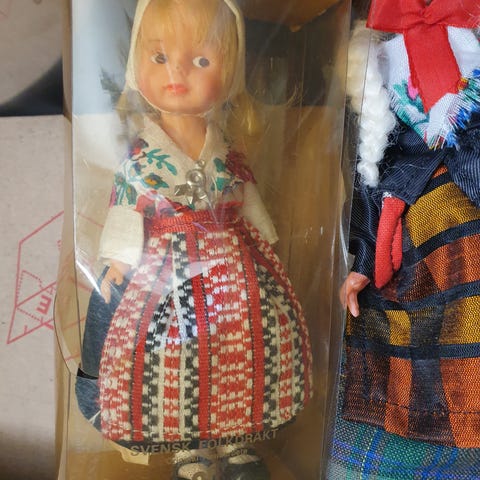 Den høyeste har hardplastkropp, ca som suvenirdukke. Den lille har gummikropp.