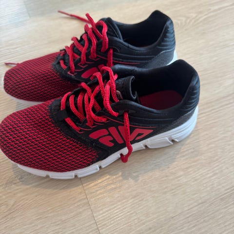 Fila joggesko til gutt i størrelse 30. Skoene er i svart med hvit såle og har snøring foran. Brukt 2 ganger - kjøpt for små