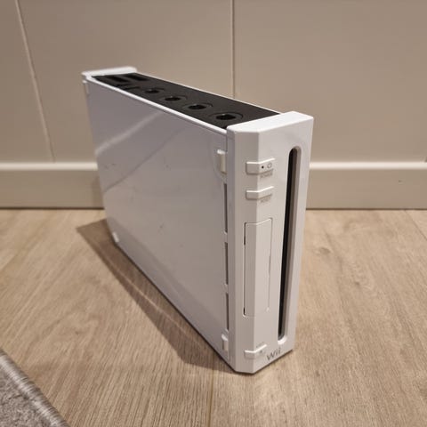 Konsoll som fungerer, men mangler noen skruer. Dekselet sitter likevel godt.