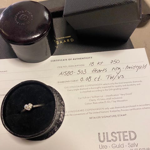 Original Ole Lynggaard-emballasje og sertifikat følger med.