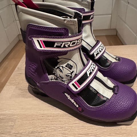 Pent brukt Alpina Frost JR langrennsstøvler for barn str 35. Modellen er isolert med Thinsulate Insulation for ekstra varme. Overdelen har glidelås og borrelåsremmer for god lukking rundt foten. Støvlene har blå og lyse detaljer med grafikk på siden. Egnet til klassisk langrenn for barn, kompatibel med vanlige barnebindinger for langrenn