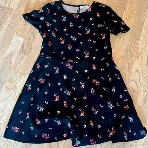 Superkul kjole i rosa og grønt blomstermønster fra HM str 42/L. Pent brukt ved et par anledninger.