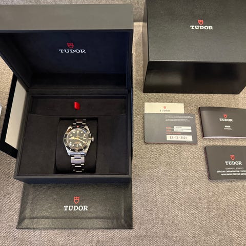 Kjøpt ny hos Urmaker Bjerke i 2024. Følger med lenker som har blitt fjernet, original boks og garantikort. Ser fortsett meget bra ut, spør du meg. De eneste merkene er på baksiden fordi jeg var litt klønete når jeg byttet mellom stållenken og en nato-rem.