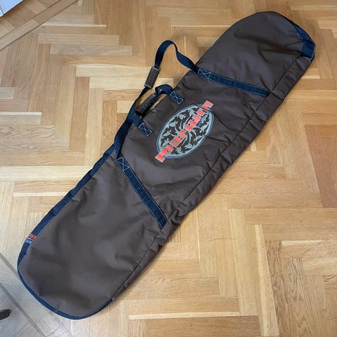 Burton snowboardbag, 165cm, til salgs. Solid og tykt nylonmateriale. Bagen fremstår som relativt pent brukt, men har noen små rifter i stoffet. Dette er uten praktisk betydning. Praktisk bærehåndtak på siden. Se ellers bildene for detaljer.