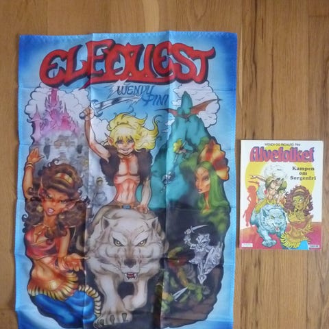 Alvefolket nr.1, Ild og Flukt med Elfquest Tegneseriebanner selges. Album utgitt i 1991. Elfquest-banneret er ca. 90x60 cm. Laget i polyester. Bør strykes da det har ligget nedpakket noen år. Flott å ha på veggen for en Alvefolket-entusiast. Kjøper tar frakt.