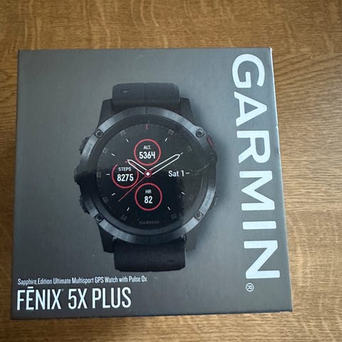 Selger en pent brukt Garmin Fenix 5X. Klokken fungerer perfekt, er oppdatert og ser nesten ny ut.