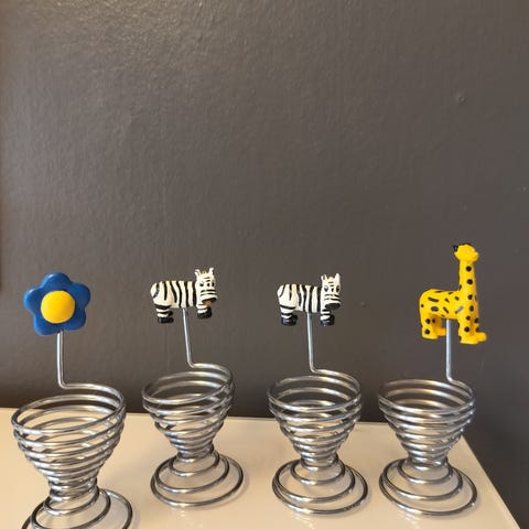 4 eggeglass med dyr på selges