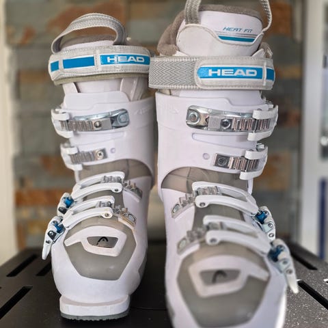 Nordica alpinstøvler, svart med rød innersko. Støvlene har fire justerbare spenner.
