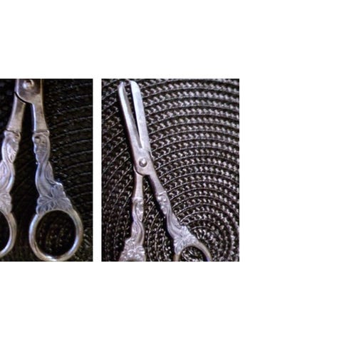 Gammel saks med bilde av samt tekst Kong Haakon VII og Dronning Maud.