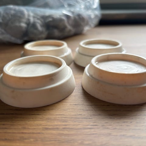 Underlag, føtter til vaskemaskin. Enkel type. Har ikke opplevd at de flytter seg.