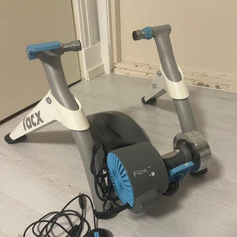 Tacx flow smart sykkelrulle med Bluetooth og ant+ som enkelt kan kobles til din treningsapp som zwift, rouvy eller mywhoosh. Jeg har brukt den med garmins egen tacx app. Fungerer utmerket med variabel motstand som endrer seg med terrenget i appen. Lillebroren til tacx flux og tacx neo. Denne har samme smarte tilkoblingsmuligheter, men brukes med hjulet fortsatt montert på sykkelen.