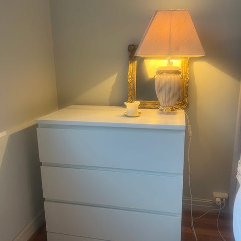 Hvit malm kommode, små bruksmerker ellers god stand.