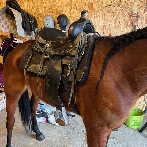 Selger maratonsele, størrelse full, med hodelag og brune tømmer. Pent brukt. Fullstendig sele med trekkreimer og baksele.
