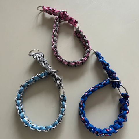 Nye håndlaget meget pene hundehalsband selges kr 300 pr stk. Jeg har kjøpt de selv men blev for små.