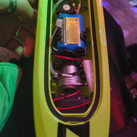Paw Patrol lekebåt utformet som en redningsbåt. Båten er laget i plast og har hovedfarger i rødt, blått, gult og grått. Modellen har plass til små figurer i midtseksjonen og førerhus foran. Den har detaljer som kranarm bak, hjul under skroget slik at den også kan rulles på gulvet, samt trykte Paw Patrol-symboler på sidene. Egnet som lekebåt og kjøretøy for barn som liker Paw Patrol-universet.
