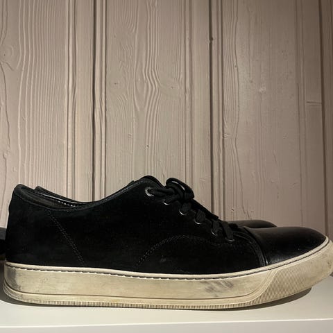 Originale sneakers fra Lanvin Paris selges til kraftig redusert pris på grunn av slitasje.