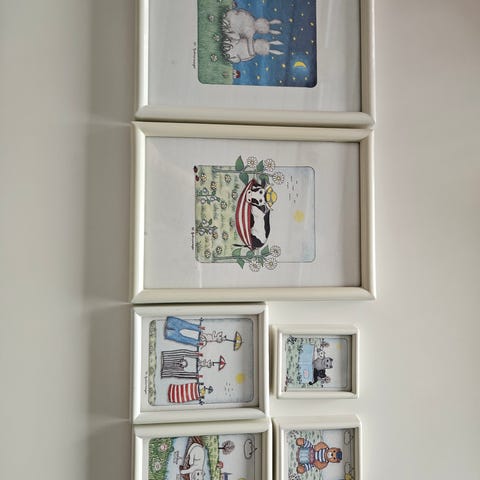 Fire små skapdører med malt dyremotiv gis bort