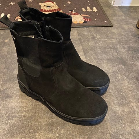 Skoene er kun prøvd på. Ble kjøpt i fjor vinter, og blitt stående i skap da de ikke passer.